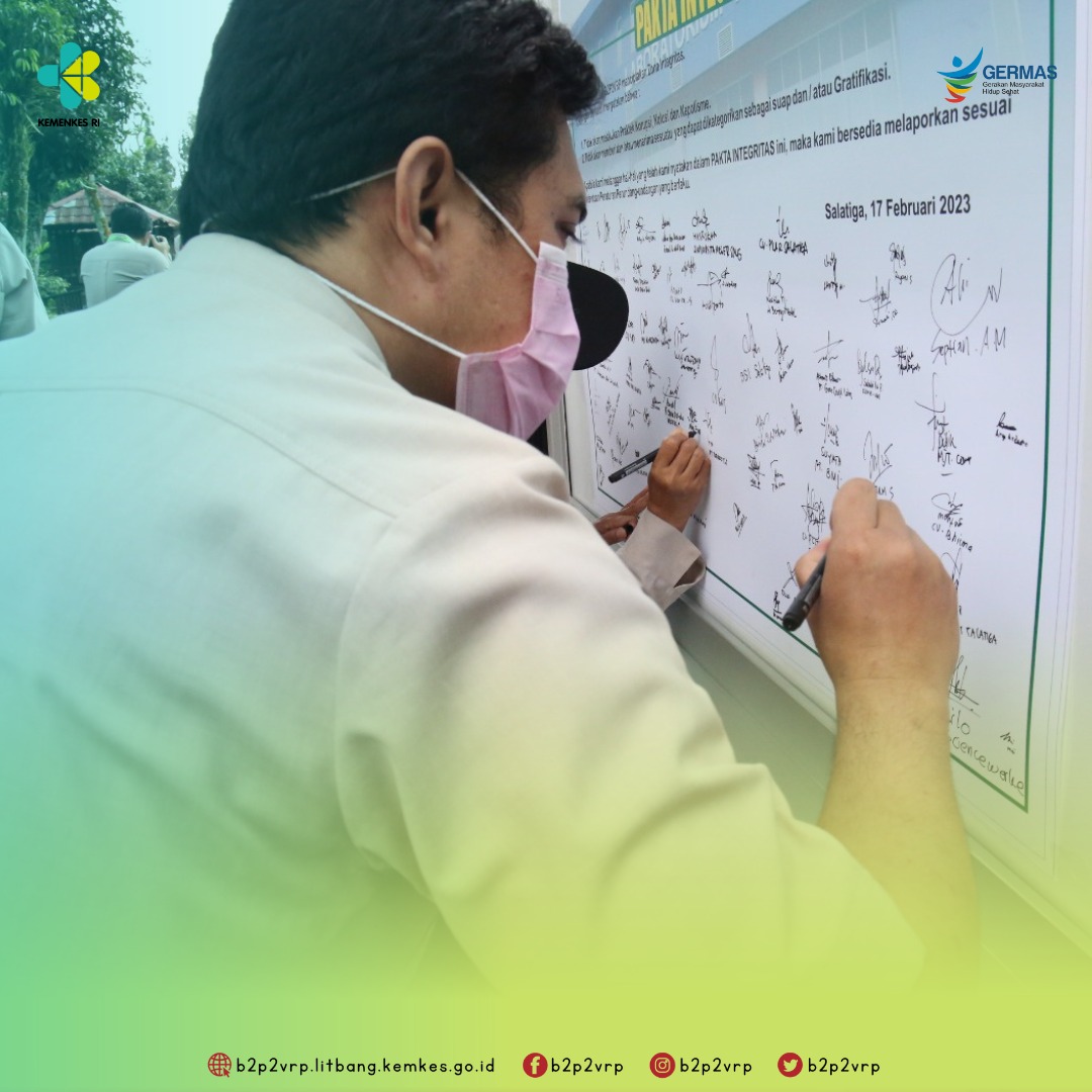 Agenda kedua pada apel 20 Februari 2023 adalah penandatanganan pakta integritas oleh seluruh pegawai B2P2VRP sebagai tindak lanjut kegiatan temu pelanggan serta penandatanganan pakta integritas oleh para pemangku kepentingan B2P2VRP. Kegiatan ini sebagai bentuk komitmen awal pimpinan dan seluruh pegawai dalam mewujudkan zona integritas di B2P2VRP. (APP/B)