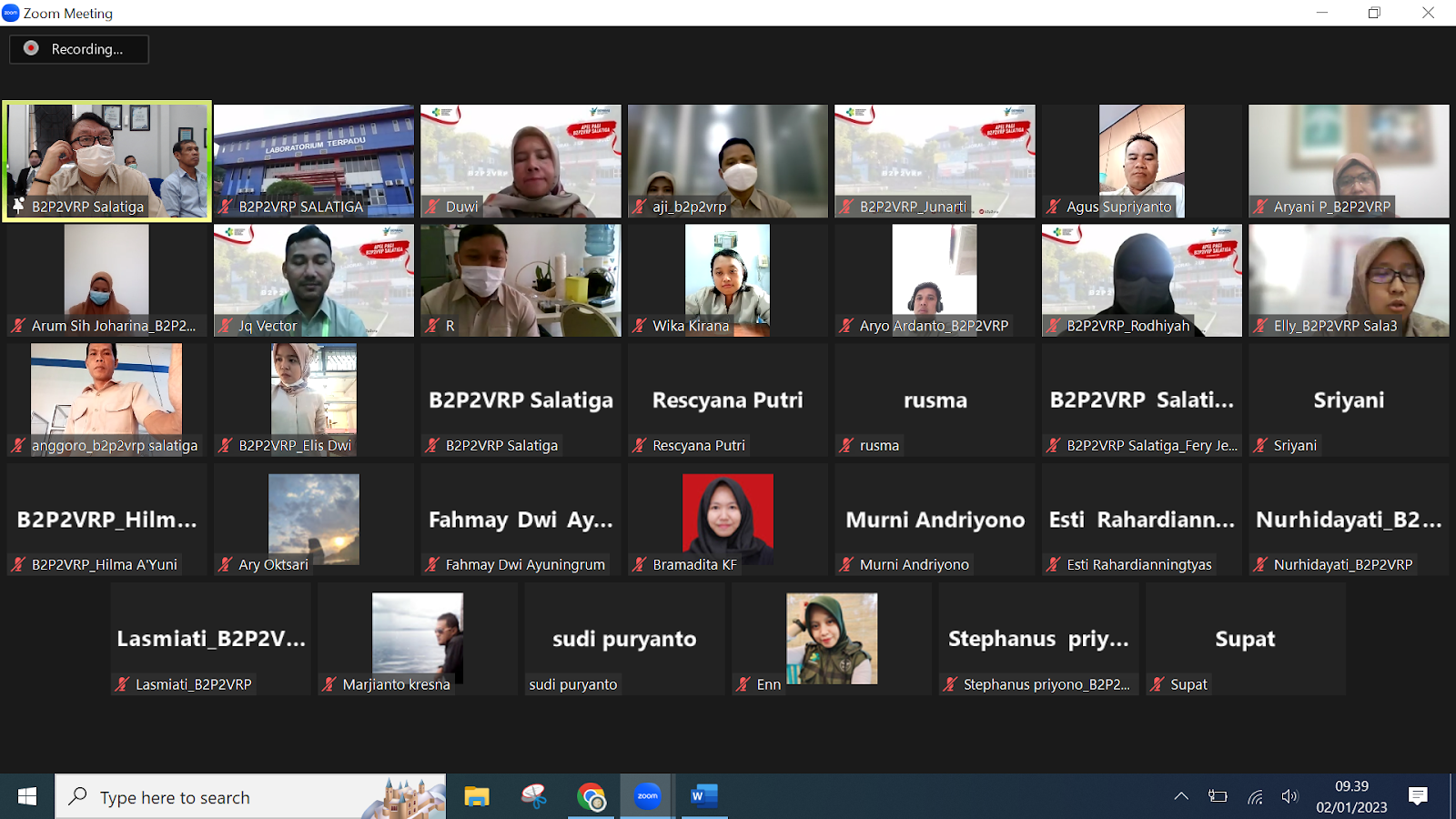 (Salatiga, 02/01/2023) - Apel pertama di Tahun 2023 diadakan oleh B2P2VRP secara daring dan luring dan dihadiri oleh hampir seluruh karyawan. Pada apel pertama kali ini, terdapat dua agenda, yaitu pelepasan pegawai yang memasuki purna tugas dan perkenalan pegawai outsourcing baru yang diampu oleh PT. Bina Mitra Jaya. Apel dibuka oleh plt.Kepala B2P2VRP Salatiga, dr.Bagus Febrianto, M.Sc. Pada kesempatan ini, beliau menyampaikan pesan kepada seluruh karyawan untuk tetap bersemangat dalam menjalankan tugas – tugas di tahun 2023. Kedisiplinan dan tanggung jawab pegawai juga merupakan hal yang ditekankan kepada seluruh pegawai. ASN merupakan unsur utama sumber daya manusia aparatur negara yang mempunyai peranan dalam menentukan keberhasilan penyelenggaraan pemerintahan serta pembangunan. Disiplin yang baik mencerminkan besarnya tanggungjawab seseorang terhadap tugas-tugas yang diberikan kepadanya. Semangat kerja dan terwujudnya tujuan organisasi dapat tercapai salah satunya dengan dua pilar di atas.