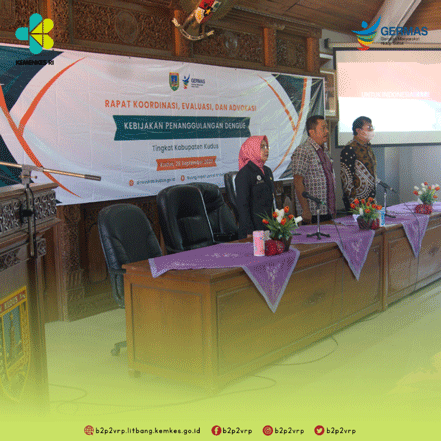 Tanggal 26 September 2023, rekomendasi kebijakan terkait penanggulangan DBD di Kabupaten Kudus disampaikan oleh Balai Besar Penelitian dan Pengembangan Vektor dan Reservoir Penyakit Salatiga mencakup sisi kebijakan maupun sisi teknis. Kegiatan advokasi rekomendasi kebijakan ini dihadiri oleh Organisasi Pemerintah Daerah (OPD) terkait seperti Komisi D DPRD Kabupaten Kudus, Dinas Pendidikan, Kepemudaan, dan Olahraga, Dinas Komunikasi dan Informatika, dan organisasi profesi. Rekomendasi kebijakan terkait penanggulangan DBD di Kabupaten Kudus disampaikan mencakup kebijakan strategis maupun kebijakan teknis. Rekomendasi dari segi kebijakan adalah dengan mencantumkan PSN 3M+ dan Pemantauan Jentik Berkala pada dokumen perencanaan seperti Renstra dan Renja. Dari segi kebijakan teknis, upaya pemberdayaan masyakarat dalam pelaksanaan PSN secara mandiri perlu dilakukan secara bersama dan berkesinambungan, penatalaksaan DBD di tingkat rumah tangga untuk mencegah keparahan kasus, deteksi infeksi sekunder, serta rotasi penggunaan insektisida dari bahan aktif pyrethroid/organoklorin. Selain melibatkan masyarakat, dari segi pemerintah daerah, beberapa kegiatan seperti koordinasi lintas sector, penyusunan petunjuk teknis pengendalian dan penangullangan DBD, penyuluhan kepada masyarakat, serta pelaksanaan Trias UKS (pendidikan kesehatan, pelayanan kesehatan, dan pembinaan lingkungan kehidupan sekolah sehat). (APP/B)