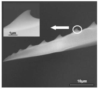 Biji tumbuhan burdock (Arctium sp.) memiliki kait-kait         Gambar close-up penampang melintang velcro