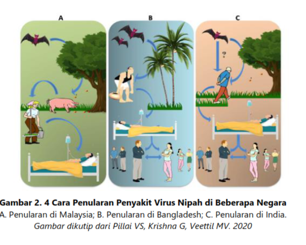 Penularan virus Nipah dapat terjadi melalui beberapa jalur berikut: